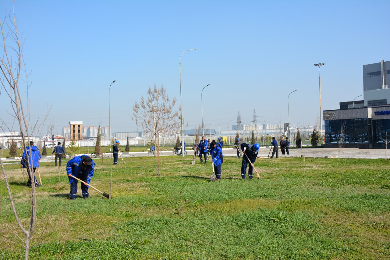 В преддверии светлого праздника Навруз на нашем предприятии прошёл традиционный хашар. Сотрудники дружно вышли на благоустройство территории: убрали рабочие зоны, привели в порядок зелёные участки, высадили деревья и цветы.